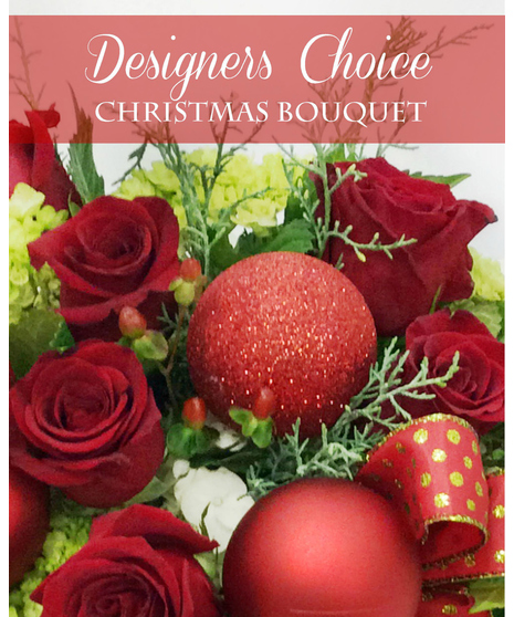 Let our designers hand craft the perfect designers choice Christmas arrangement for you. They will select the freshest holiday flowers to deliver to your friends and family. Flowers and colors in photo are for holiday reference only.