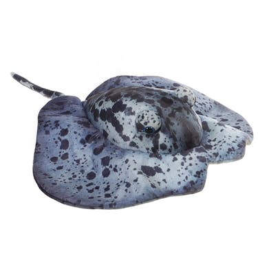 The toy's fabric mimics the stingray's distinctive spotted pattern, rendered in soothing shades of blue and gray. These spots are not only a visual delight but also serve as a great educational tool, illustrating the natural camouflage that real stingrays use to blend into the ocean floor's complex patterns.