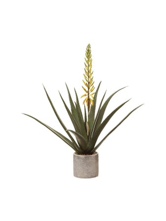 Bring a bold, sculptural presence to your space with our Agave Plant (Silk) from Port Charlotte Florist. Standing an impressive 48 inches tall, this artificial stunner is designed with real-touch leaves that mimic the lifelike texture and beauty of the desert-dwelling Agave Americana. Its striking two-tone foliage—a rich blend of vibrant green and golden yellow—adds dimension and visual interest, making it a captivating focal point for any room. Perfect for homes, offices, or commercial settings, this faux agave requires no watering, sunlight, or maintenance, offering long-lasting greenery with effortless elegance. Nestled in a decorative pot, it's ready to display right out of the box. The realistic finish and dramatic height make it an ideal accent for modern, tropical, or Southwestern-inspired décor.