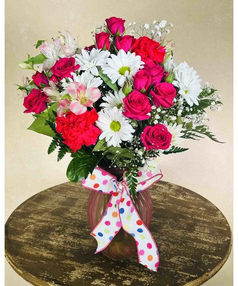 Whether you’re sending a smile to a dear friend, surprising Mom “just because,” or celebrating a birthday or get-well occasion, Polka Dots & Posies makes every moment feel extra special. Its compact size and bright personality make it perfect for desks, bedside tables, or cozy kitchen nooks. Hand-delivered with care from our Port Charlotte flower shop, this bouquet is more than a floral gift—a little bundle of joy wrapped in ribbon and bursting with affection.