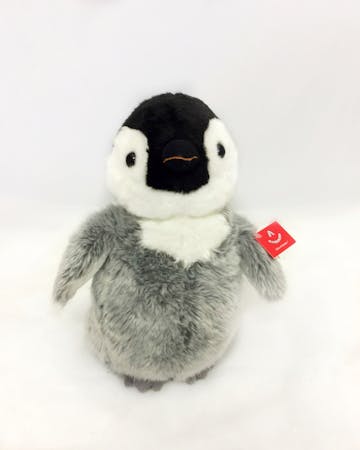Standing at approximately 12 inches long, Penny the Penguin is the ideal size for both play and display. Its soft, plush fabric mimics the smoothness of a penguin's feathers, and the grey accents give Penny a realistic yet whimsical appearance. The attention to detail is evident in Penny's sweet, expressive eyes and the delicate orange stitching that forms her beak, bringing this toy to life with a personality all its own.