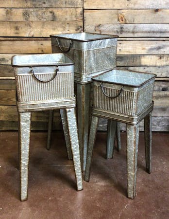 Adorable and oh so trendy, these galvanized metal plant stands are the perfect gift to send alongside a fresh or silk plant! Measuring in at 33.5 h x 12.5 w x 12.5 d for the large, 30.5 h x 11.5 w x 11.5 d for the medium, and 26.5" h x 11" w x 11"d for the small.