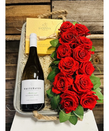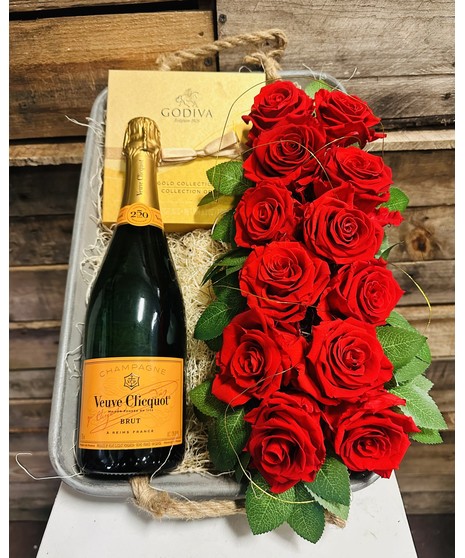 Send this PRESERVED ROSE BUNDLE, which includes a dozen stunning red preserved rose designed in a decorative concrete planter and accompanied by luscious Godiva chocolates.