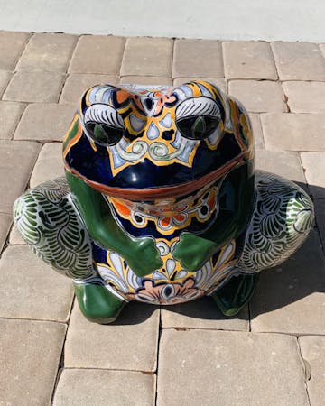 Talavera is hand crafted traditional Mexican Pottery designed in bright colors and detailed patterns. Know for their exceptional quality and source only from certified Talavera workshops. Brought to you by Port Charlotte Florist. Small: Approx size is 11" x 10" x 10". Small Teal Blue: 10" x 10" x 9"". Medium Cobalt/Green approx: 14" x 14" x 14" h with a 7.5" opening. Medium Teal Blue: 14" x 14" x 12". Large- 13" wide by 13" deep and 14" high. Extra Large Cobalt Fish Design Approx: 20" x 20" x 19.5" with a 10" opening.