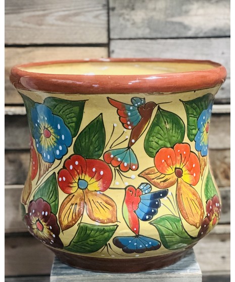Add a vibrant splash of color and artisanal charm to your home or garden with the Talavera Hummingbird Pot XL from Port Charlotte Florist. This exquisite piece of hand-crafted pottery celebrates the rich tradition of Mexican Talavera, known for its bold colors, intricate floral patterns, and joyful depictions of birds, butterflies, and natural motifs. Painted by skilled artisans in certified Talavera workshops, each pot is a one-of-a-kind treasure, showcasing craftsmanship passed down through generations.