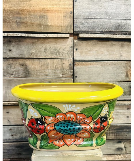 Talavera is hand crafted traditional Mexican Pottery designed in bright colors and detailed patterns. Know for their exceptional quality and source only from certified Talavera workshops. Brought to you by Port Charlotte Florist. Each planter has a blend of succulents, pods, moss and more! Approximate sizes: Small 15" high x 11" wide, Medium 17" high by 11" wide, Large 18" high by 12" wide.