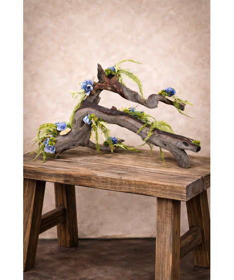 Organic, artistic, and inspired by coastal beauty, By The Seashore is a one-of-a-kind silk floral design that brings the essence of nature indoors. Crafted on a natural driftwood-style base, this arrangement features delicate blue blooms, soft greenery, and airy fern accents that flow effortlessly along the curves of the wood. Subtle textural elements and coastal tones create a serene, beach-inspired aesthetic.