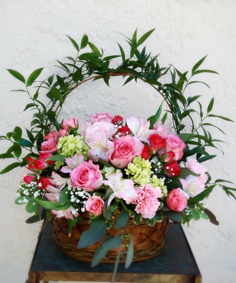 Step into the beauty of a timeless English garden with our Victorian Garden basket from Port Charlotte Florist. Overflowing with romance, charm, and a whisper of nostalgia, this hand-designed arrangement features a dreamy mix of soft pink roses, delicate carnations, playful alstroemeria, and textured asters—all nestled in a woven basket that’s as quaint as it is classic. Gentle sprigs of eucalyptus and other fresh greenery add layers of elegance and grace, while the natural arch of ruscus gives this piece a fairytale finish.