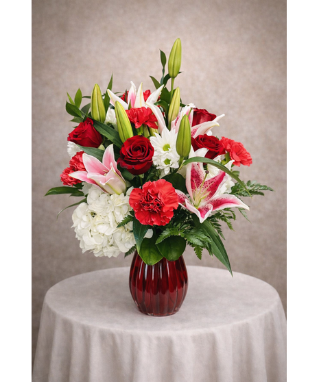 Hand-arranged in a rich red vase, this bouquet radiates elegance and warmth, making it the perfect gift for Valentine's Day, anniversaries, or spontaneous romantic gestures. Each bloom is selected with care to ensure the freshest, most vibrant display possible. Whether you’re wooing a new flame or reaffirming your devotion to a longtime love, this arrangement speaks volumes without saying a word. At Port Charlotte Florist, we believe love should always be celebrated with beautiful flowers, and this bouquet does just that—brilliantly and beautifully.