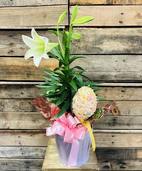 This gorgeous plant features snowy white blossoms and lush green foliage, presented with festive wrapping and a decorative bow for a thoughtful finishing touch. Fresh and long-lasting, it brings natural beauty and fragrance into the home, brightening Easter celebrations with its simple yet stunning charm.
